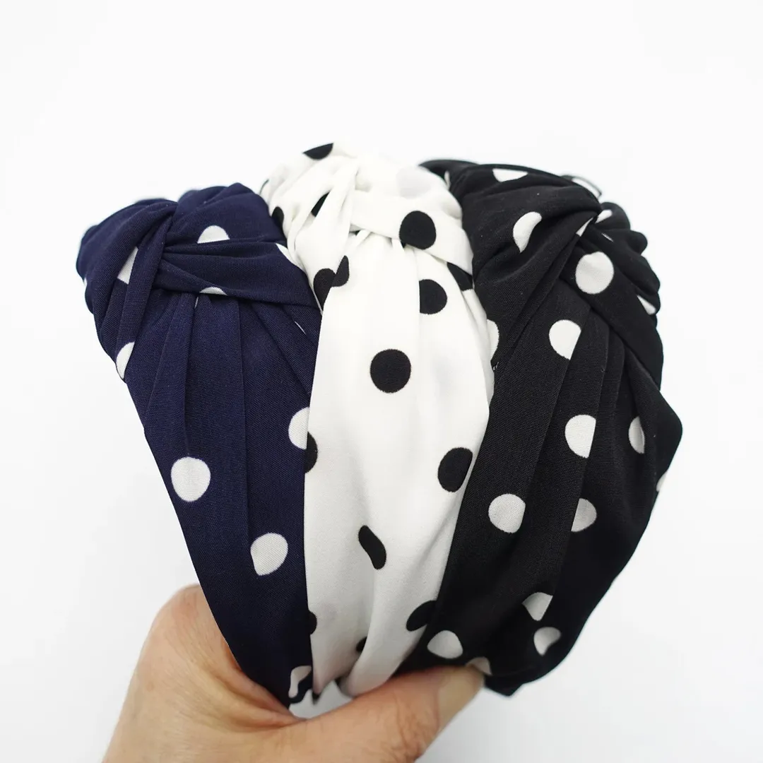 Product details of 1 Pcs Korean Style Solid Fabric Dotted Knot Hair Band Fashion Hair Bands Print Headbands Knotted Wide Headbands Cross Knot Hair Bands Vintage Cross Turban Bandage Bandanas Hairbands Hairband Turban Hoops Twist Headbands Girls Lovely Dot Headbands